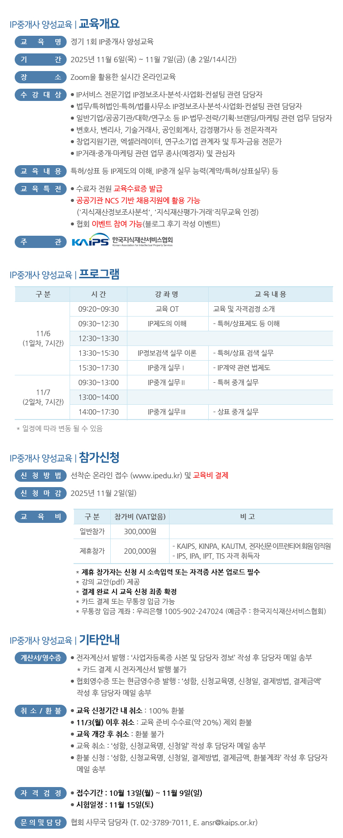 [한국지식재산서비스협회] 정기 1회 IP중개사 양성교육 안내(~11/2까지)