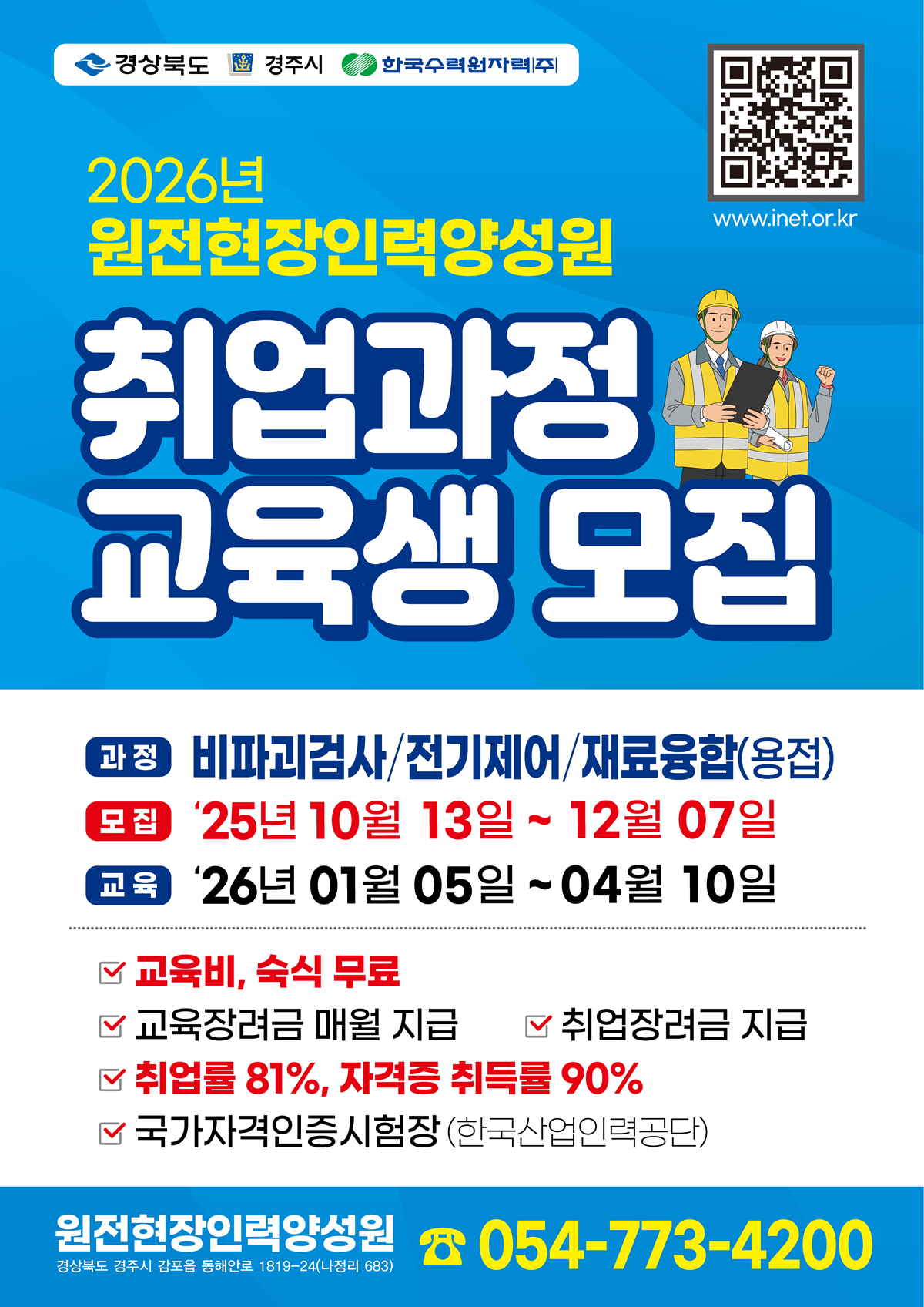 지원접수 : 원전현장인력양성원(www.inet.or.kr) 문의 ☎ 054-773-4200