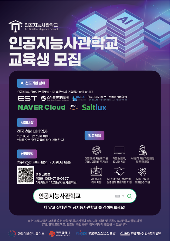 대한민국 No.1 AI 교육 플랫폼, 광주 인공지능사관학교에서 AI 전문가로 거듭나세요!