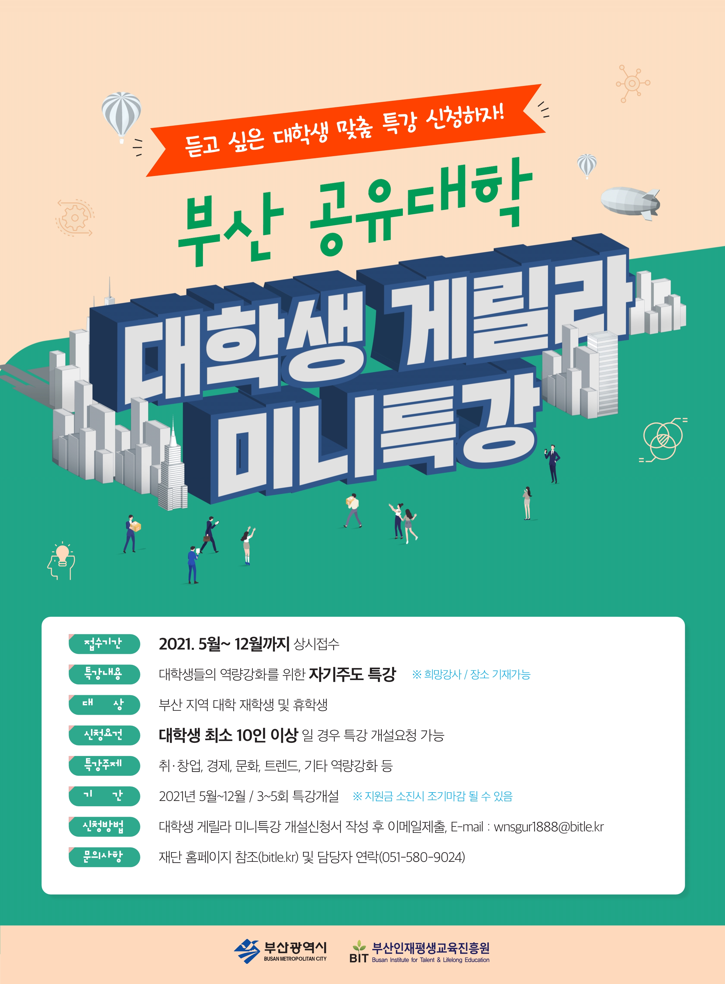 [부산광역시] 2021년 대학생 게릴라 미니특강 안내