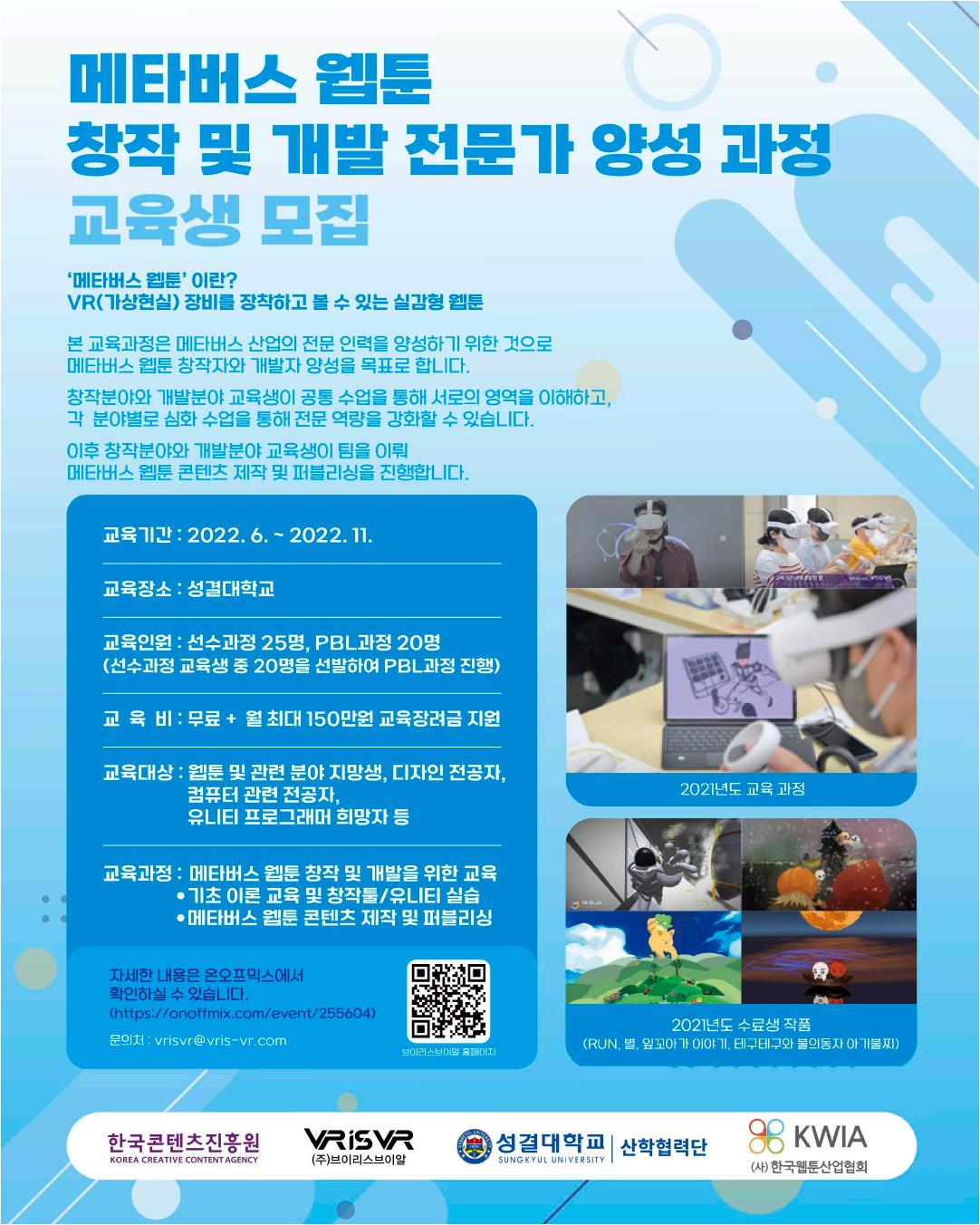 4) 교육운영기관: (주)브이리스브이알, 성결대학교 산학협력단, (사)한국웹툰산업협회