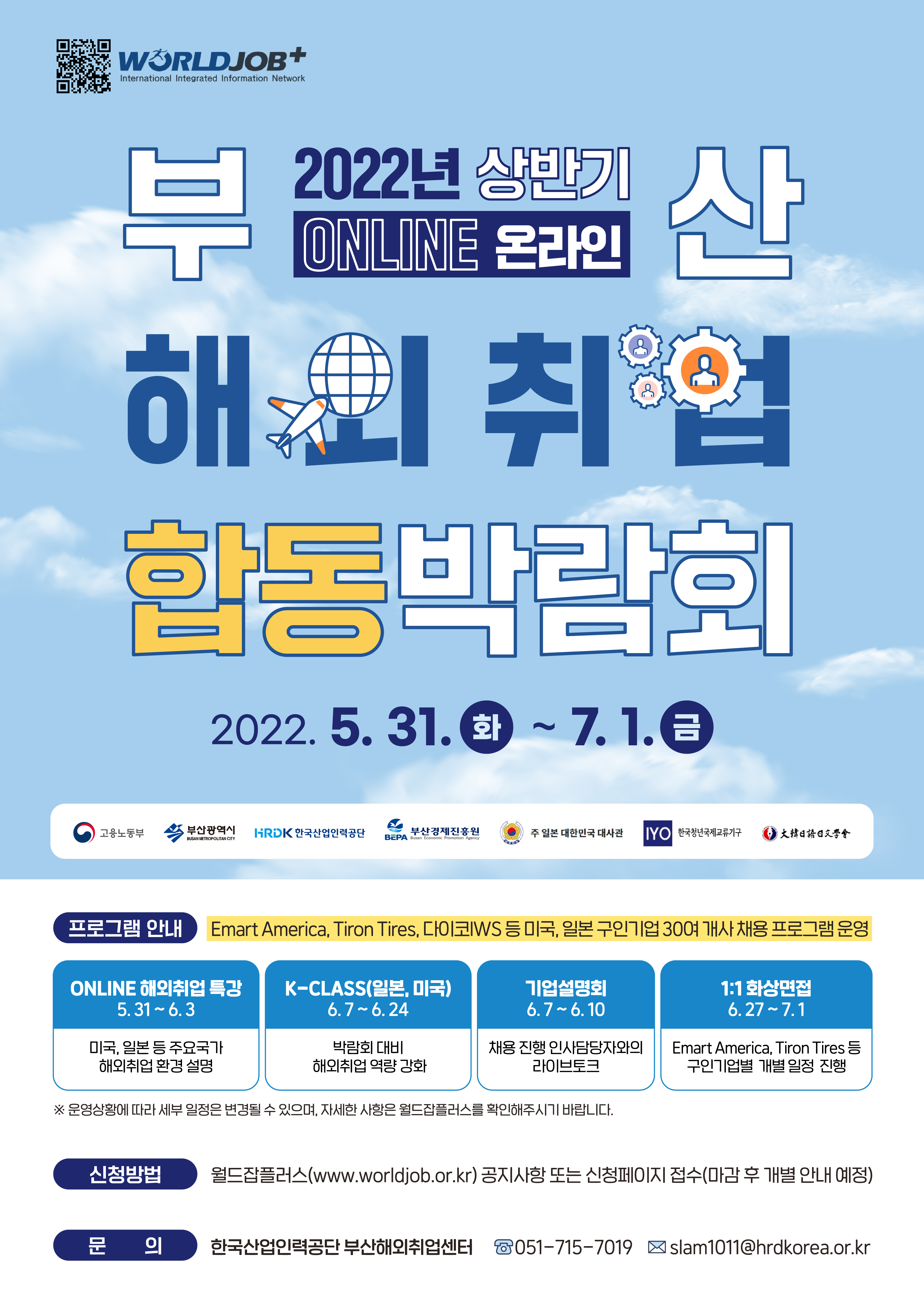 ○ 신청방법 : 월드잡 플러스 홈페이지 공지사항(https://www.worldjob.or.kr) 또는 신청 페이지(https://www.worldjob.or.kr/busanjobfair/jobfairMain.do)