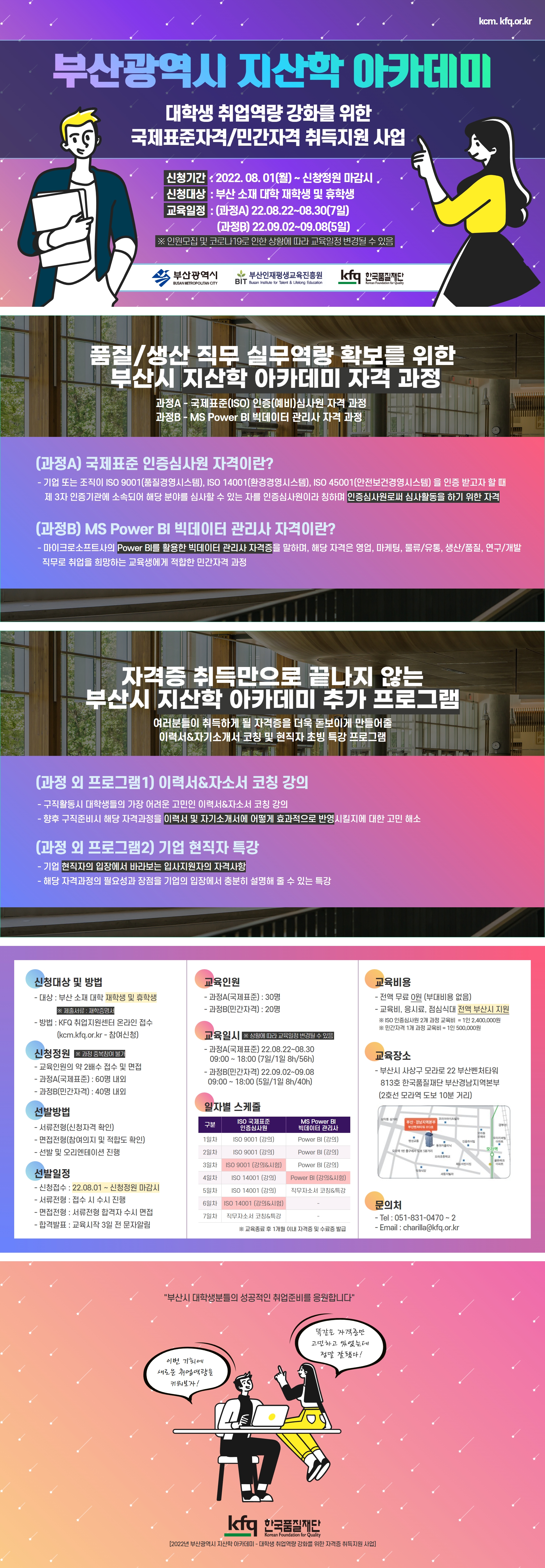 - 교육비, 응시료, 점심 식대 전액 부산시 지원