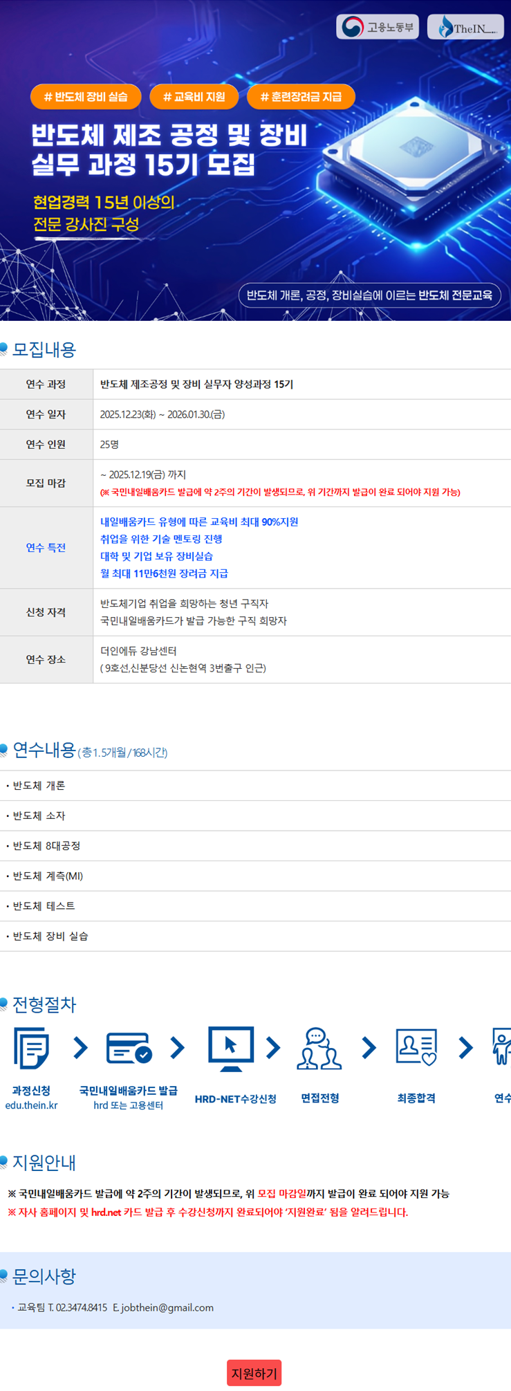 제목 [고용노동부 교육비+훈련 장려금지원] 반도체 제조공정 및 장비실무자 15기