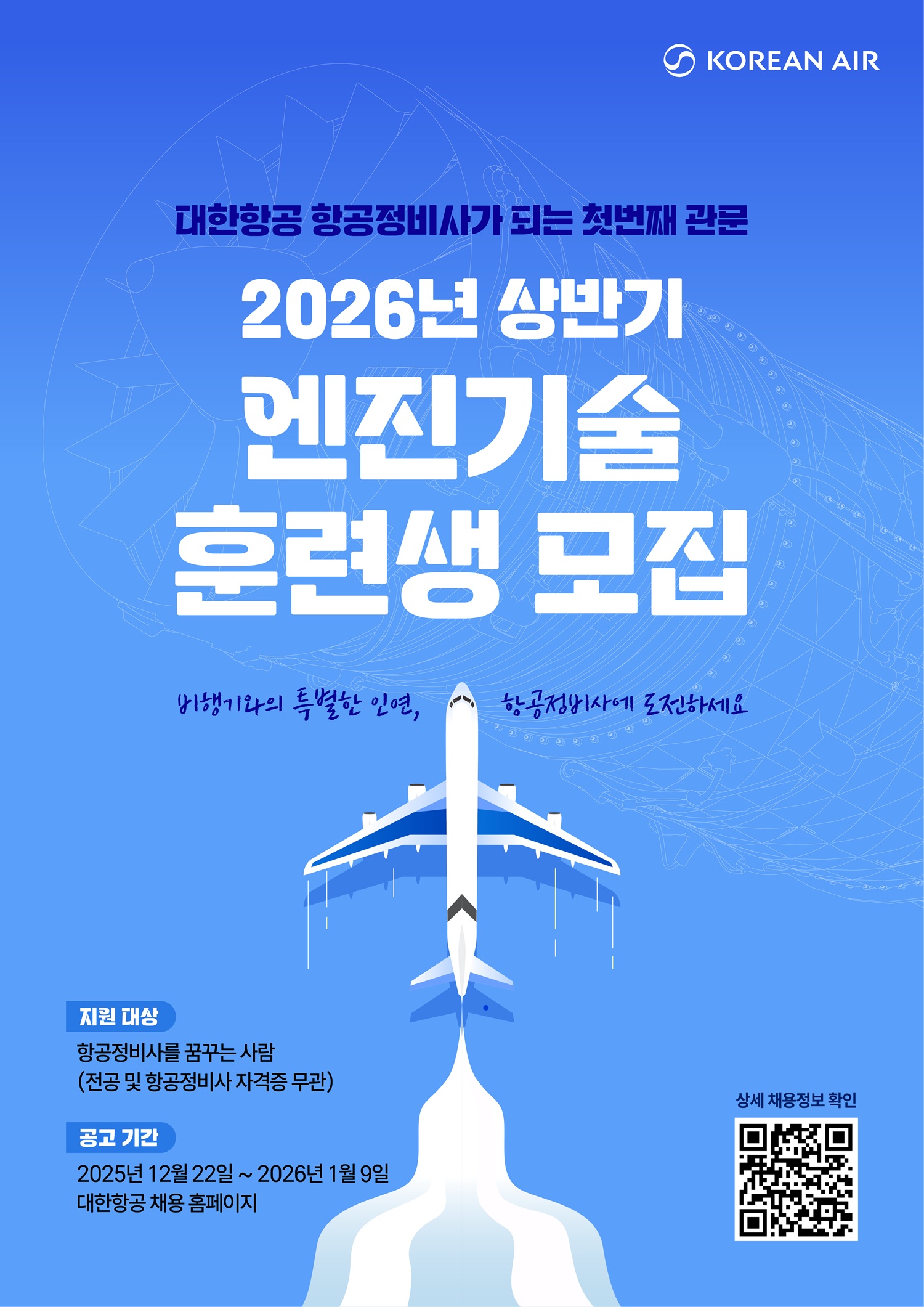 [대한항공] 2026년 상반기 항공정비사 엔진기술훈련생 모집 공고 게시 및 모집 설명회